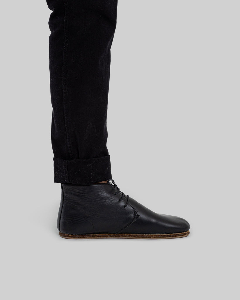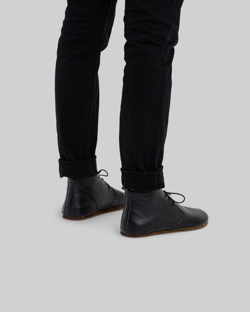 Galata Black Color Artisan Handcrafted Genuine Leather Zero Drop Barefoot Ankle Boot For Men | Wide Toe Box | Flexible Sole | Zero Drop | Lightweight | Breathable | Eco-Friendly | Grounding Shoes | Minimalist Shoes