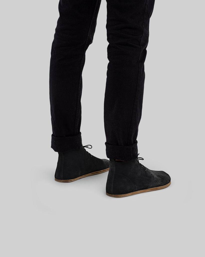 Galata Black Color Artisan Handcrafted Suede Genuine Leather Zero Drop Barefoot Ankle Boot For Men | Wide Toe Box | Flexible Sole | Zero Drop | Lightweight | Breathable | Eco-Friendly | Grounding Shoes | Minimalist Shoes