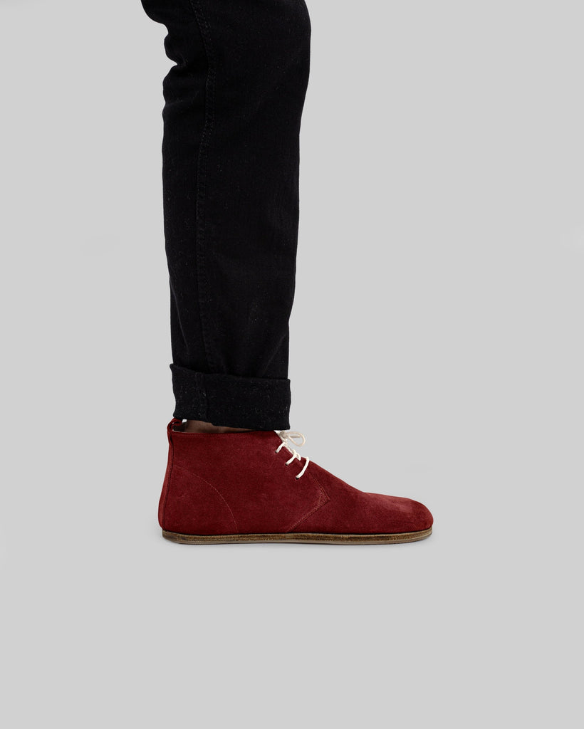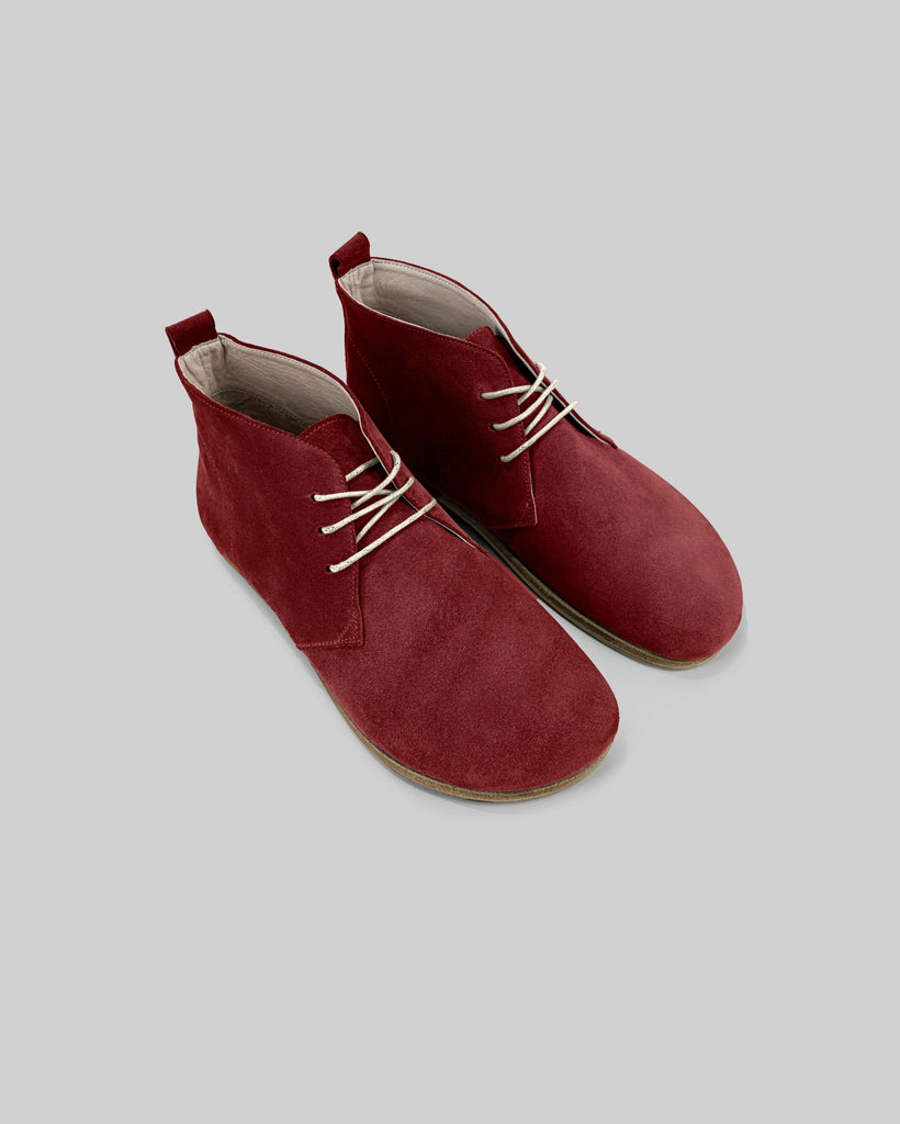 Galata Burgundy Color Artisan Handcrafted Suede Genuine Leather Zero Drop Barefoot Ankle Boot For Women | Wide Toe Box | Flexible Sole | Zero Drop | Lightweight | Breathable | Eco-Friendly | Grounding Shoes | Minimalist Shoes