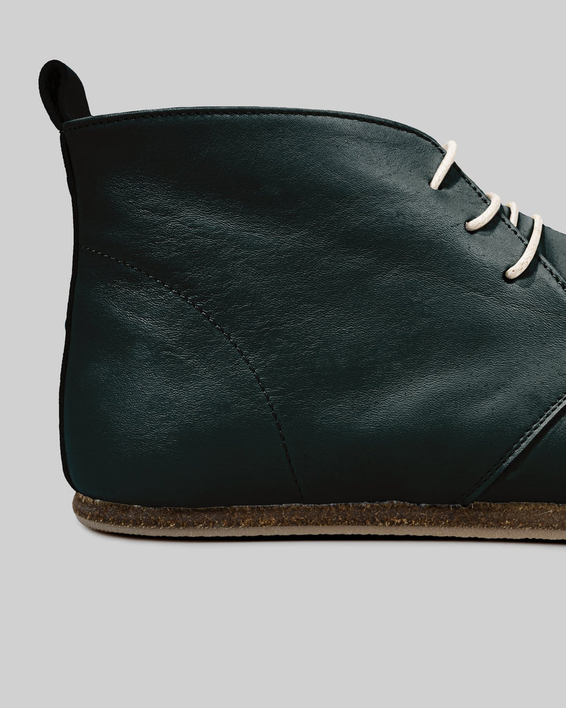 Galata Dark Green Color Artisan Handcrafted Genuine Leather Zero Drop Barefoot Ankle Boot For Women | Wide Toe Box | Flexible Sole | Zero Drop | Lightweight | Breathable | Eco-Friendly | Grounding Shoes | Minimalist Shoes