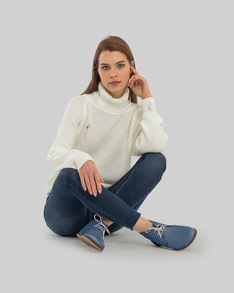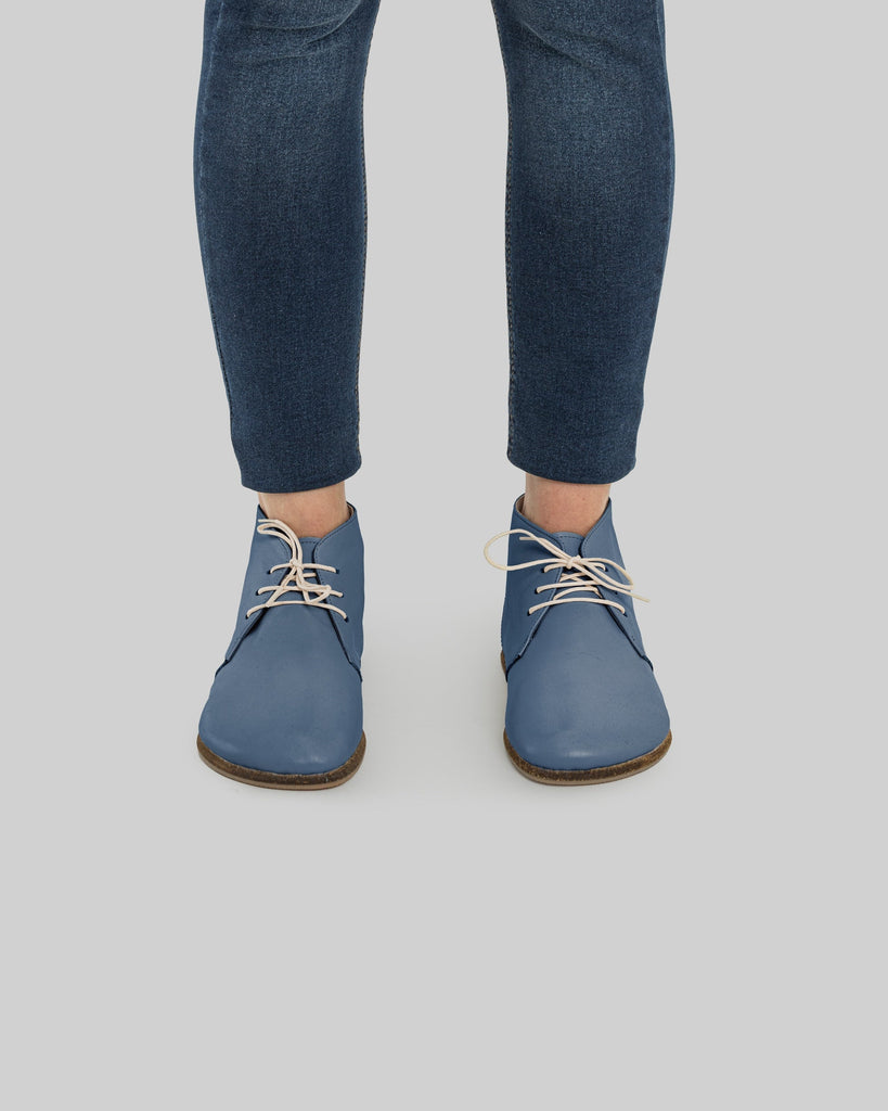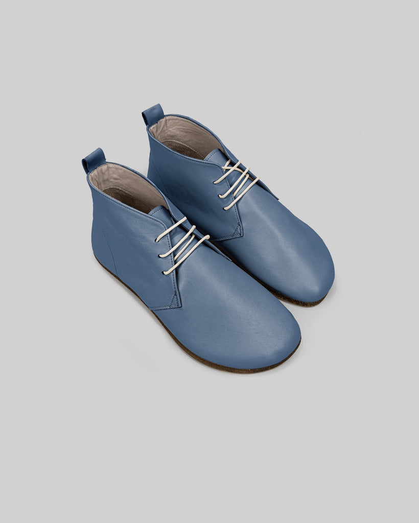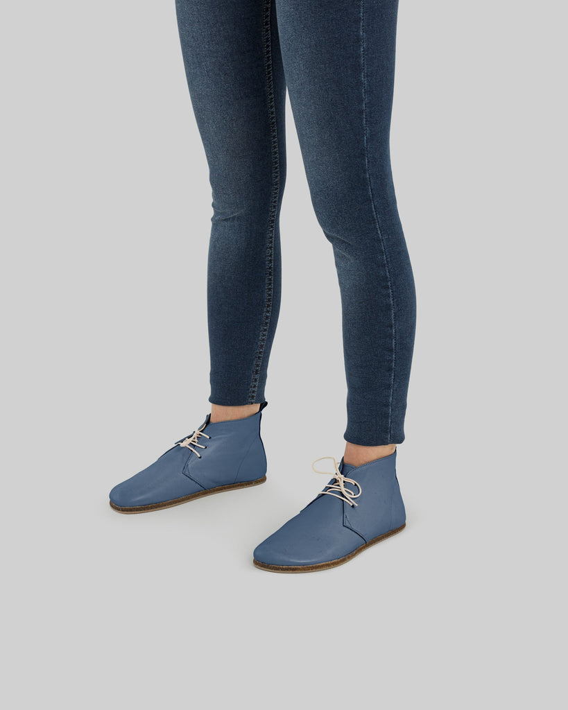 Galata Jean Blue Color Artisan Handcrafted Genuine Leather Zero Drop Barefoot Ankle Boot For Women | Wide Toe Box | Flexible Sole | Zero Drop | Lightweight | Breathable | Eco-Friendly | Grounding Shoes | Minimalist Shoes
