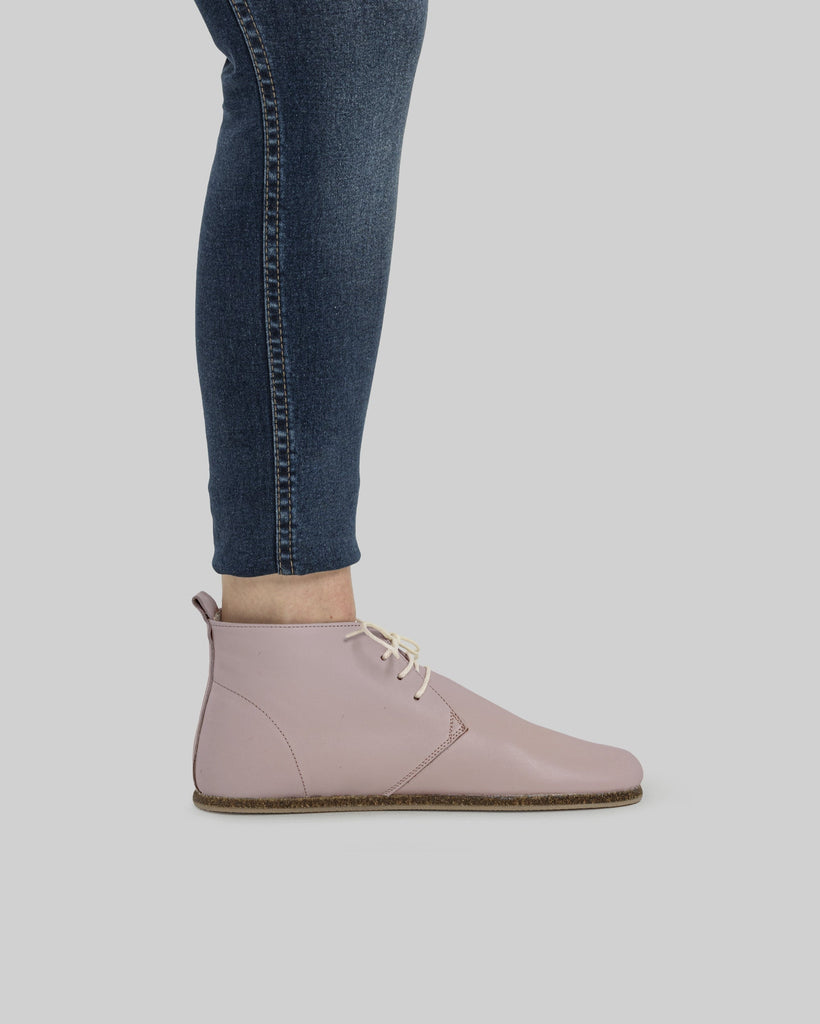 Galata Light Pink Color Artisan Handcrafted Genuine Leather Zero Drop Barefoot Ankle Boot For Women | Wide Toe Box | Flexible Sole | Zero Drop | Lightweight | Breathable | Eco-Friendly | Grounding Shoes | Minimalist Shoes