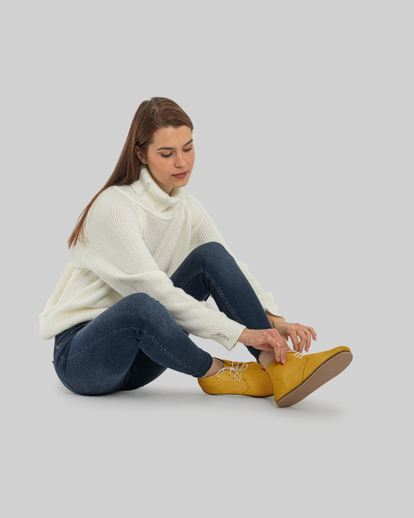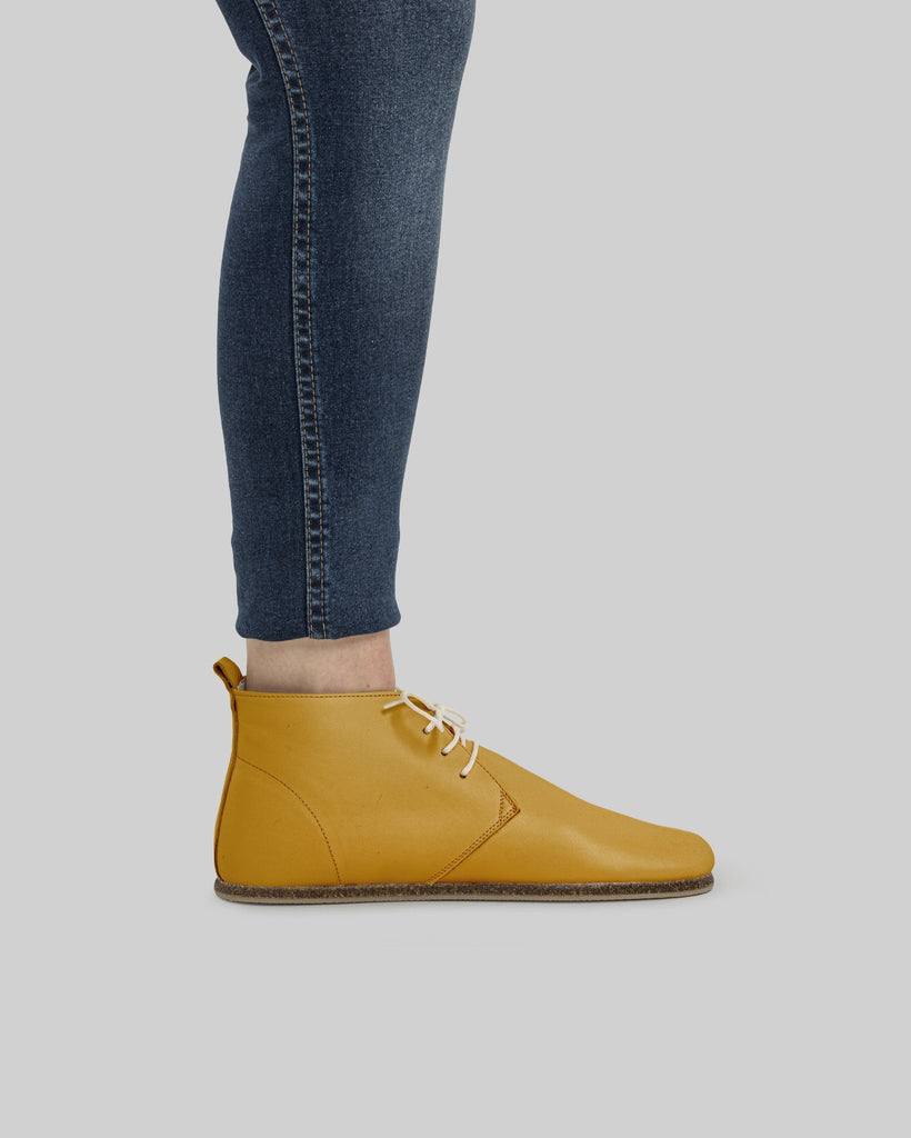 Galata Mustard Yellow Color Artisan Handcrafted Genuine Leather Zero Drop Barefoot Ankle Boot For Men | Wide Toe Box | Flexible Sole | Zero Drop | Lightweight | Breathable | Eco-Friendly | Grounding Shoes | Minimalist Shoes