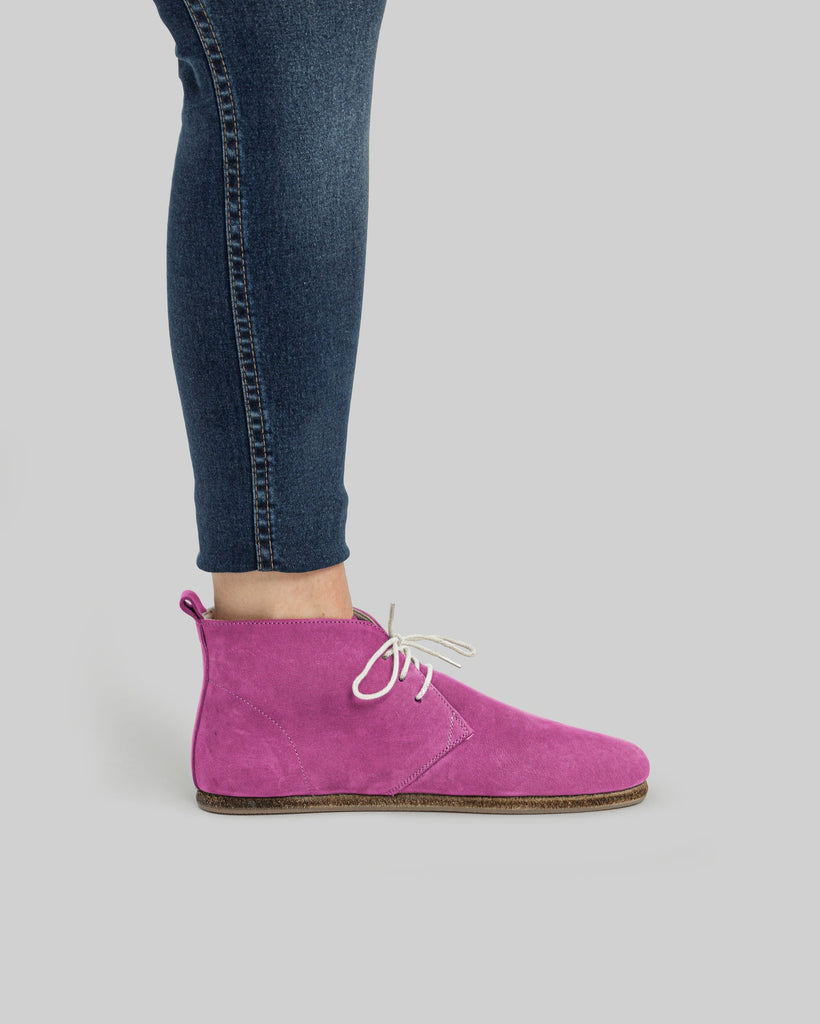 Galata Pink Color Artisan Handcrafted Nubuck Genuine Leather Zero Drop Barefoot Ankle Boot For Women | Wide Toe Box | Flexible Sole | Zero Drop | Lightweight | Breathable | Eco-Friendly | Grounding Shoes | Minimalist Shoes