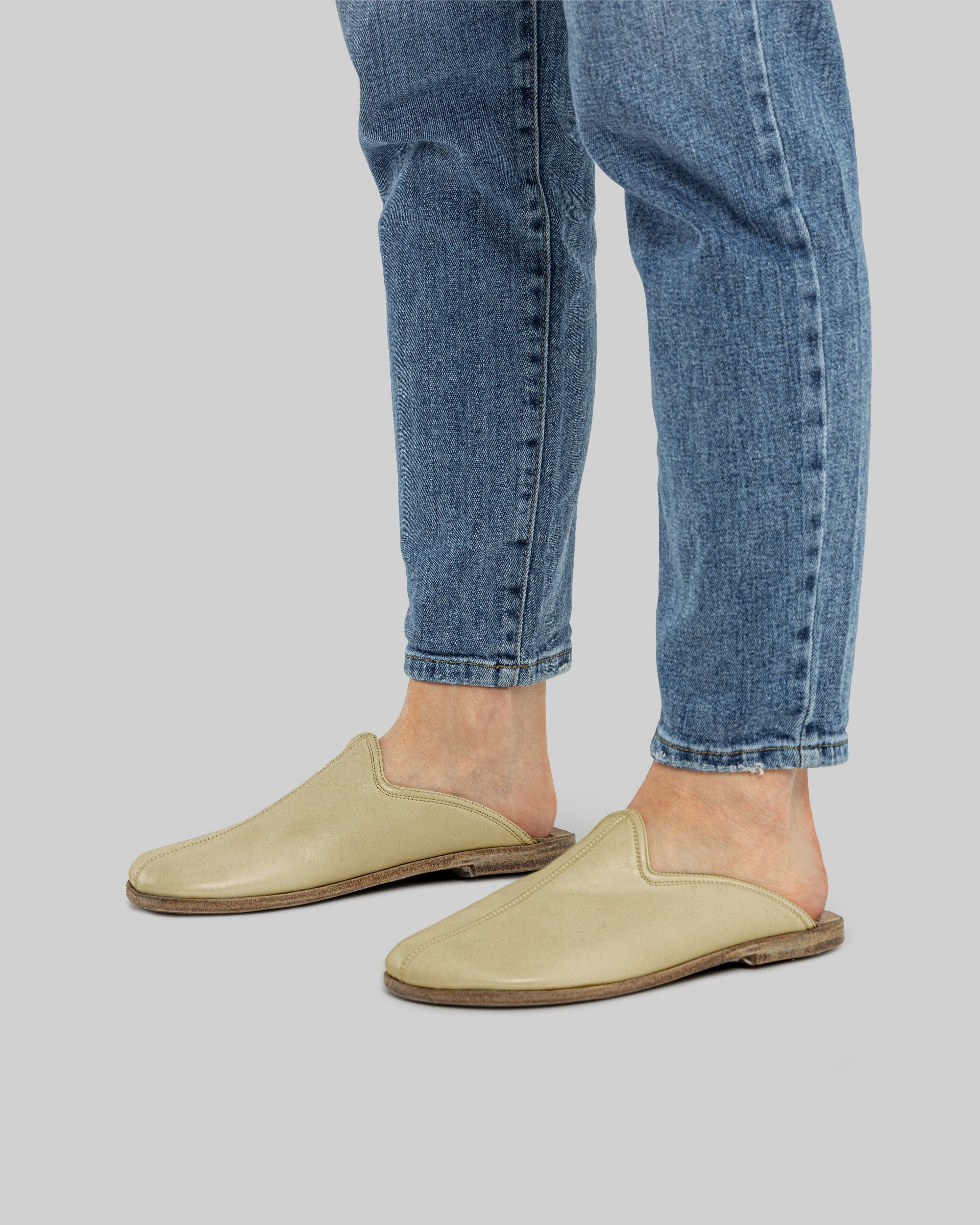 Made from natural leather footwear, each pair of handmade leather slippers includes an upper and lining of natural tanned cow leather and an insole and outsole of natural tanned buffalo leather measuring 7mm thick with a 5mm heel. This artisan handcrafted shoes design ensures lightweight grounding shoes that feel like walking barefoot but with added protection and support for everyday wear in spring, summer, and fall.