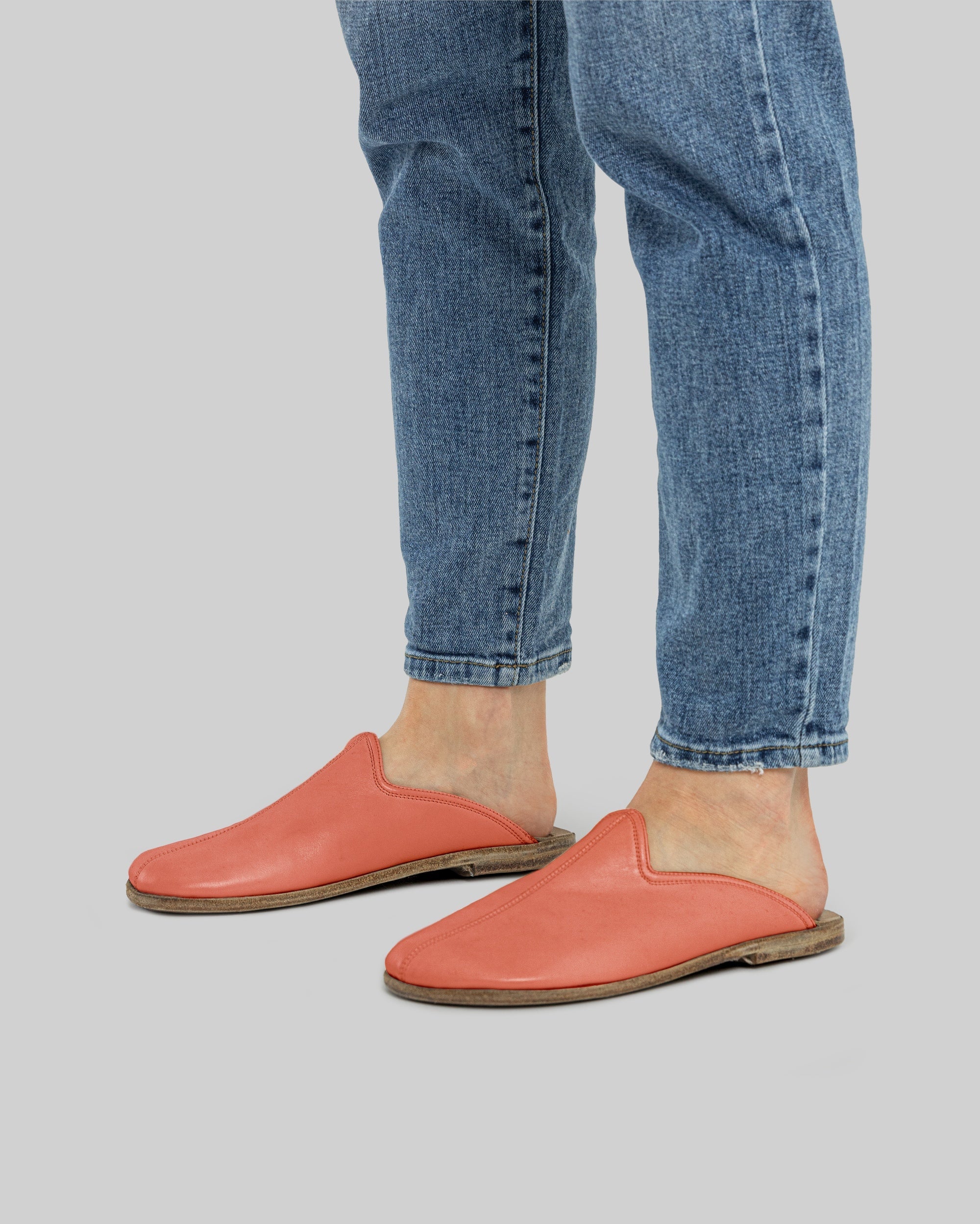 • Natural tanned cow leather upper, lining, and buffalo leather insole/outsole → durable, eco friendly slippers