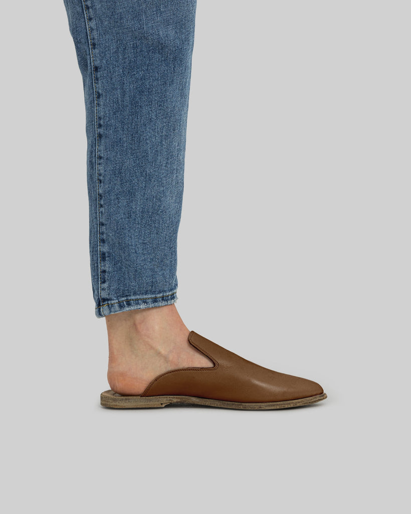 Salda Dark Tan Color Artisan Handcrafted Genuine Leather Grounding Pointed Toe Slipper For Women | Wide Toe Box | Flexible Sole | Zero Drop | Lightweight | Breathable | Eco-Friendly | Grounding Shoes | Minimalist Shoes