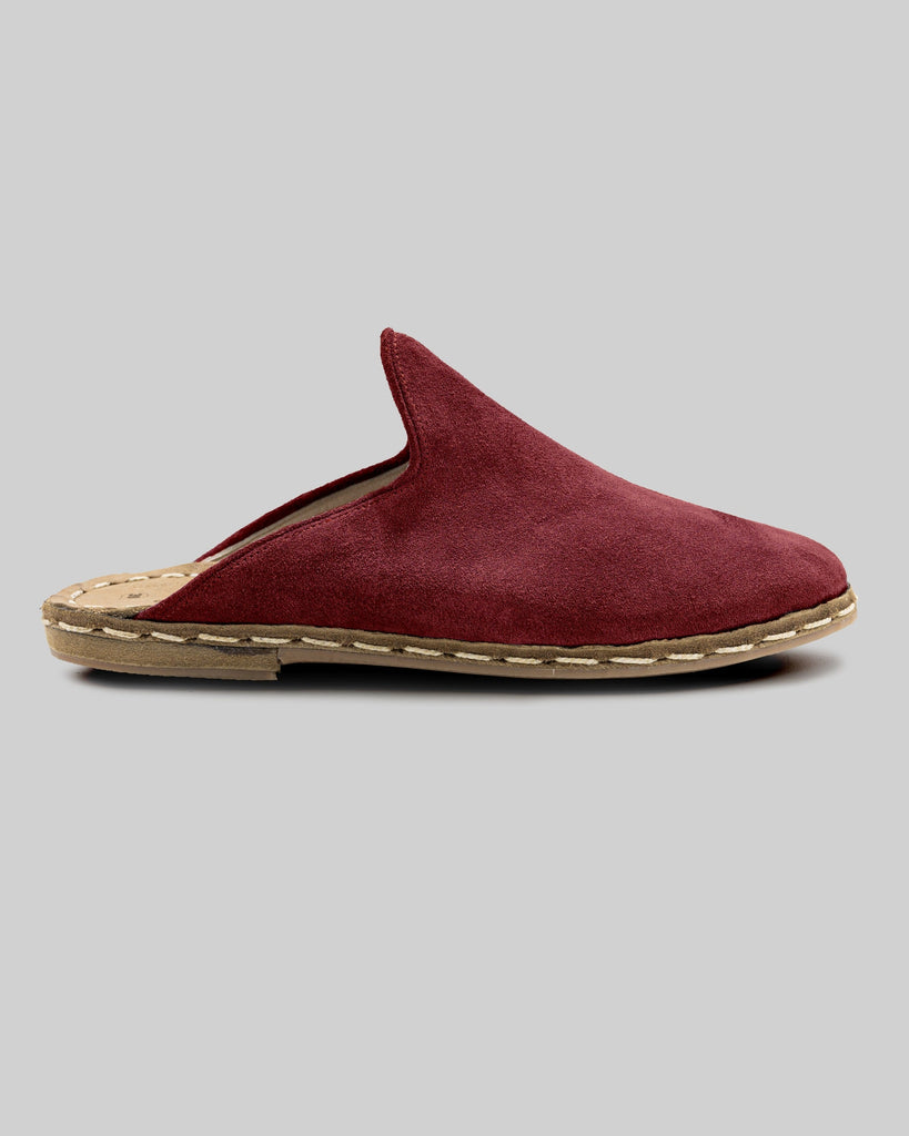 Side Burgundy Color Artisan Handcrafted Suede Genuine Leather Zero Drop Slippers For Men | Wide Toe Box | Flexible Sole | Zero Drop | Lightweight | Breathable | Eco-Friendly | Grounding Shoes | Minimalist Shoes