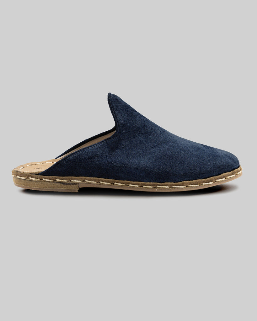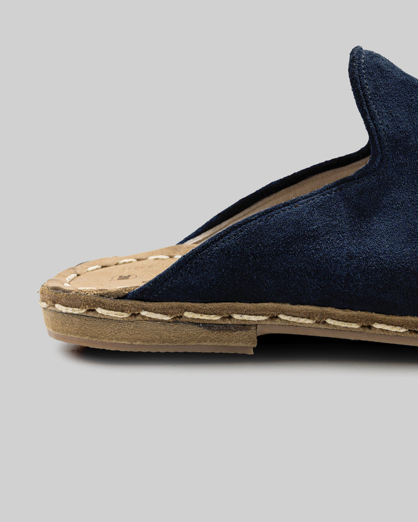Side Navy Color Artisan Handcrafted Suede Genuine Leather Zero Drop Slippers For Men | Wide Toe Box | Flexible Sole | Zero Drop | Lightweight | Breathable | Eco-Friendly | Grounding Shoes | Minimalist Shoes