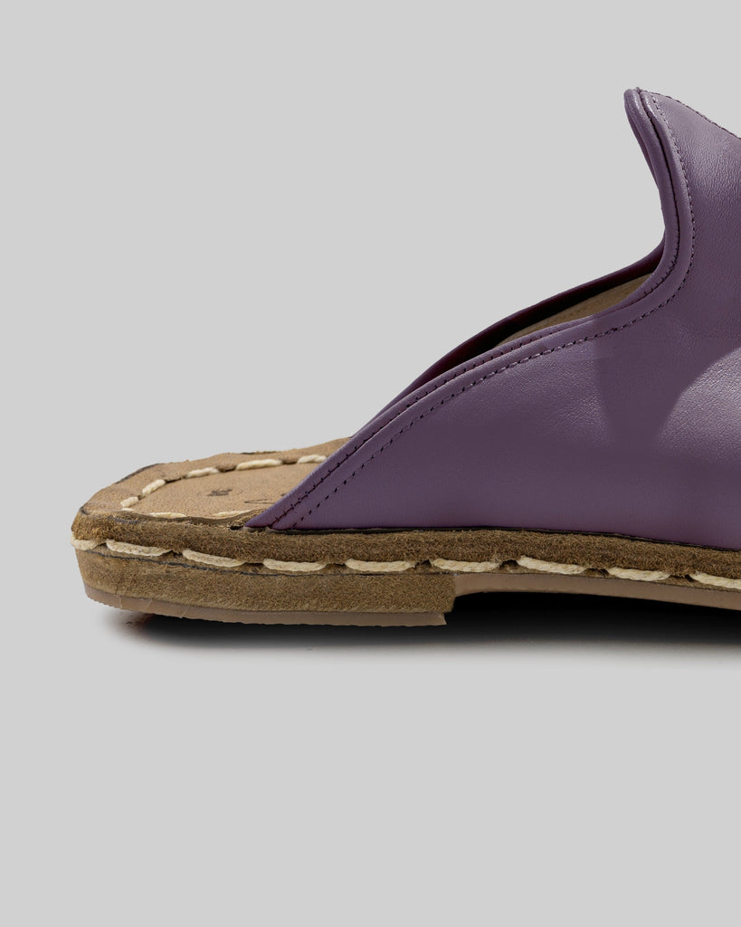 Side Purple Color Artisan Handcrafted Genuine Leather Zero Drop Slippers For Women | Wide Toe Box | Flexible Sole | Zero Drop | Lightweight | Breathable | Eco-Friendly | Grounding Shoes | Minimalist Shoes
