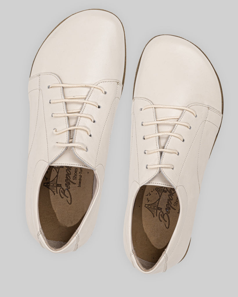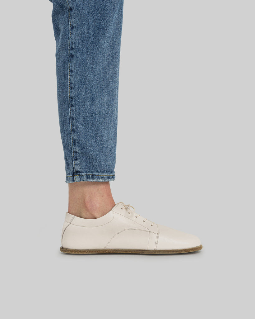 Taksim Cream Leather Color Artisan Handcrafted Genuine Leather Grounding Barefoot Sneaker For Women | Wide Toe Box | Flexible Sole | Zero Drop | Lightweight | Breathable | Eco-Friendly | Grounding Shoes | Minimalist Shoes