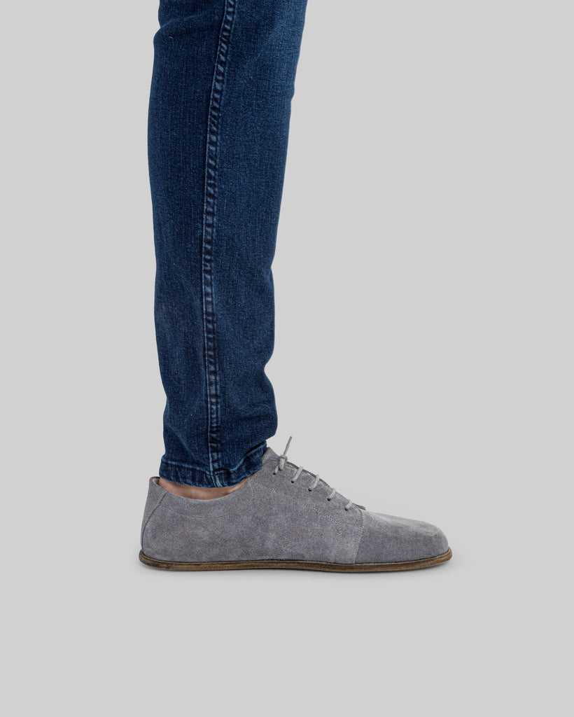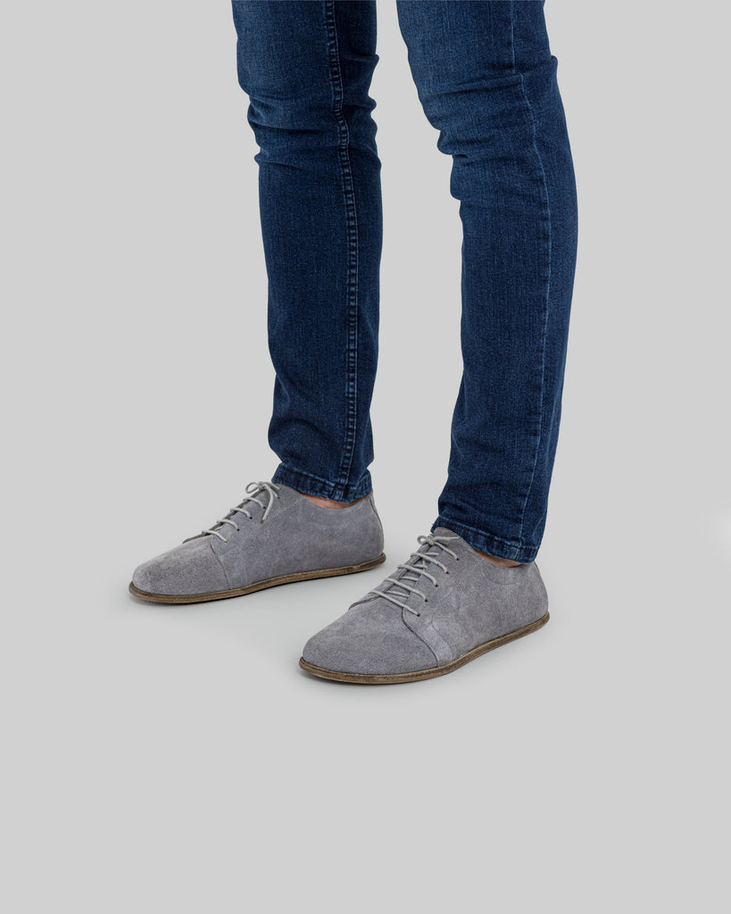 Taksim Grey Color Artisan Handcrafted Suede Genuine Leather Grounding Barefoot Sneaker For Men | Wide Toe Box | Flexible Sole | Zero Drop | Lightweight | Breathable | Eco-Friendly | Grounding Shoes | Minimalist Shoes