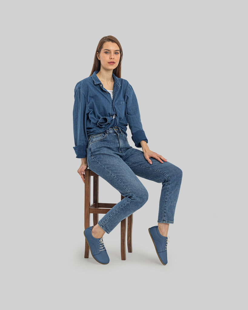 Taksim Jean Blue Color Artisan Handcrafted Genuine Leather Grounding Barefoot Sneaker For Women | Wide Toe Box | Flexible Sole | Zero Drop | Lightweight | Breathable | Eco-Friendly | Grounding Shoes | Minimalist Shoes