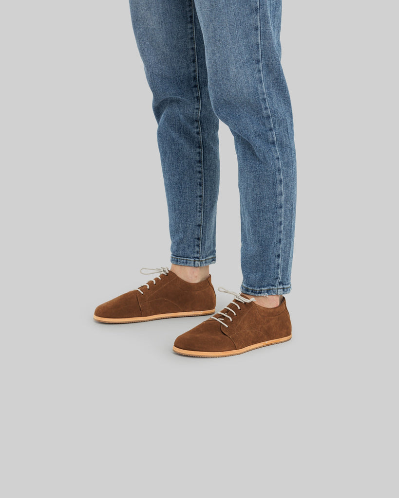 Taksim Tan Color Artisan Handcrafted Nubuck Genuine Leather Zero Drop Barefoot Sneaker For Men | Wide Toe Box | Flexible Sole | Zero Drop | Lightweight | Breathable | Eco-Friendly | Grounding Shoes | Minimalist Shoes