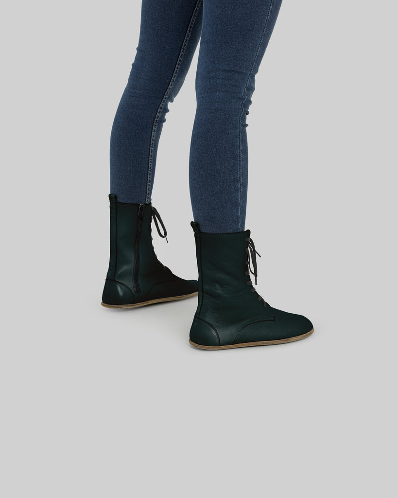 Topkapi Dark Green Color Artisan Handcrafted Genuine Leather Grounding Barefoot Boot For Women | Wide Toe Box | Flexible Sole | Zero Drop | Lightweight | Breathable | Eco-Friendly | Grounding Shoes | Minimalist Shoes