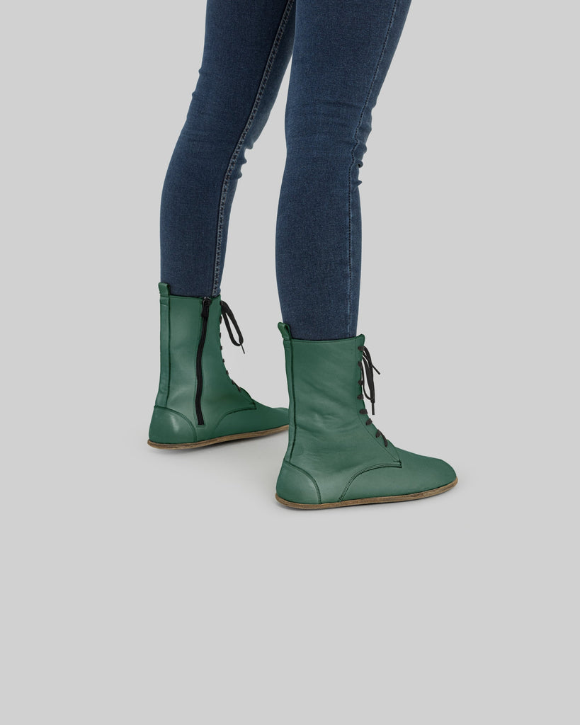 Topkapi Green Color Artisan Handcrafted Genuine Leather Grounding Barefoot Boot For Women | Wide Toe Box | Flexible Sole | Zero Drop | Lightweight | Breathable | Eco-Friendly | Grounding Shoes | Minimalist Shoes