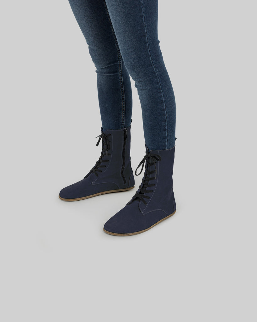Topkapi Navy Color Artisan Handcrafted Genuine Leather Grounding Barefoot Boot For Women | Wide Toe Box | Flexible Sole | Zero Drop | Lightweight | Breathable | Eco-Friendly | Grounding Shoes | Minimalist Shoes