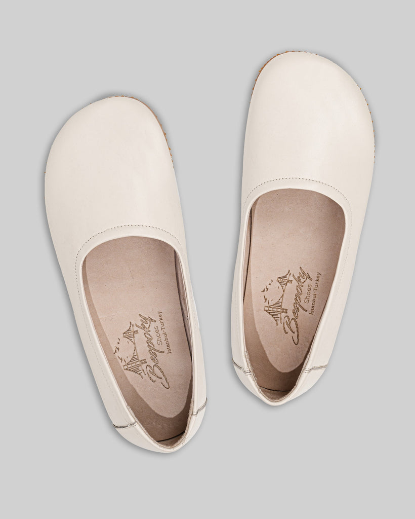 Tulip Cream Leather Color Artisan Handcrafted Genuine Leather Zero Drop Barefoot Flat Ballet Shoes For Women | Wide Toe Box | Flexible Sole | Zero Drop | Lightweight | Breathable | Eco-Friendly | Grounding Shoes | Minimalist Shoes